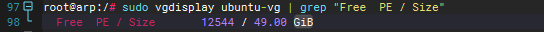 sudo vgdisplay ubuntu-vg | grep "Free PE / Size"