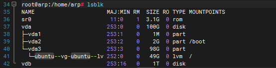 └─ubuntu--vg-ubuntu--lv 252:0 0 49G 0 lvm /