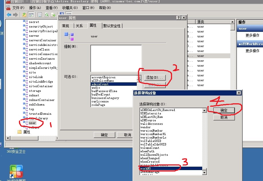 2.但是dsa中不能对自定义的扩展属性进行管理。要管理这个,就需要使用adsiedit.msc。