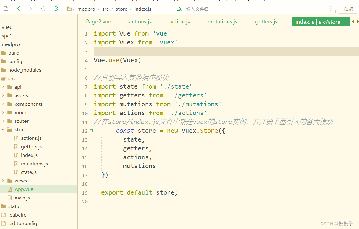 3 在store/index.js文件中新建vuex的store实例,并注册上面引入的各大模块