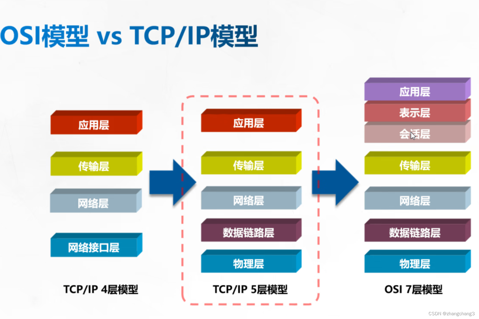 4、传输层,首先要根据TCP头部判断数据段送往哪个应用层协议或应用程序,然后将之前被分组的数据段重组,再送往应用层;