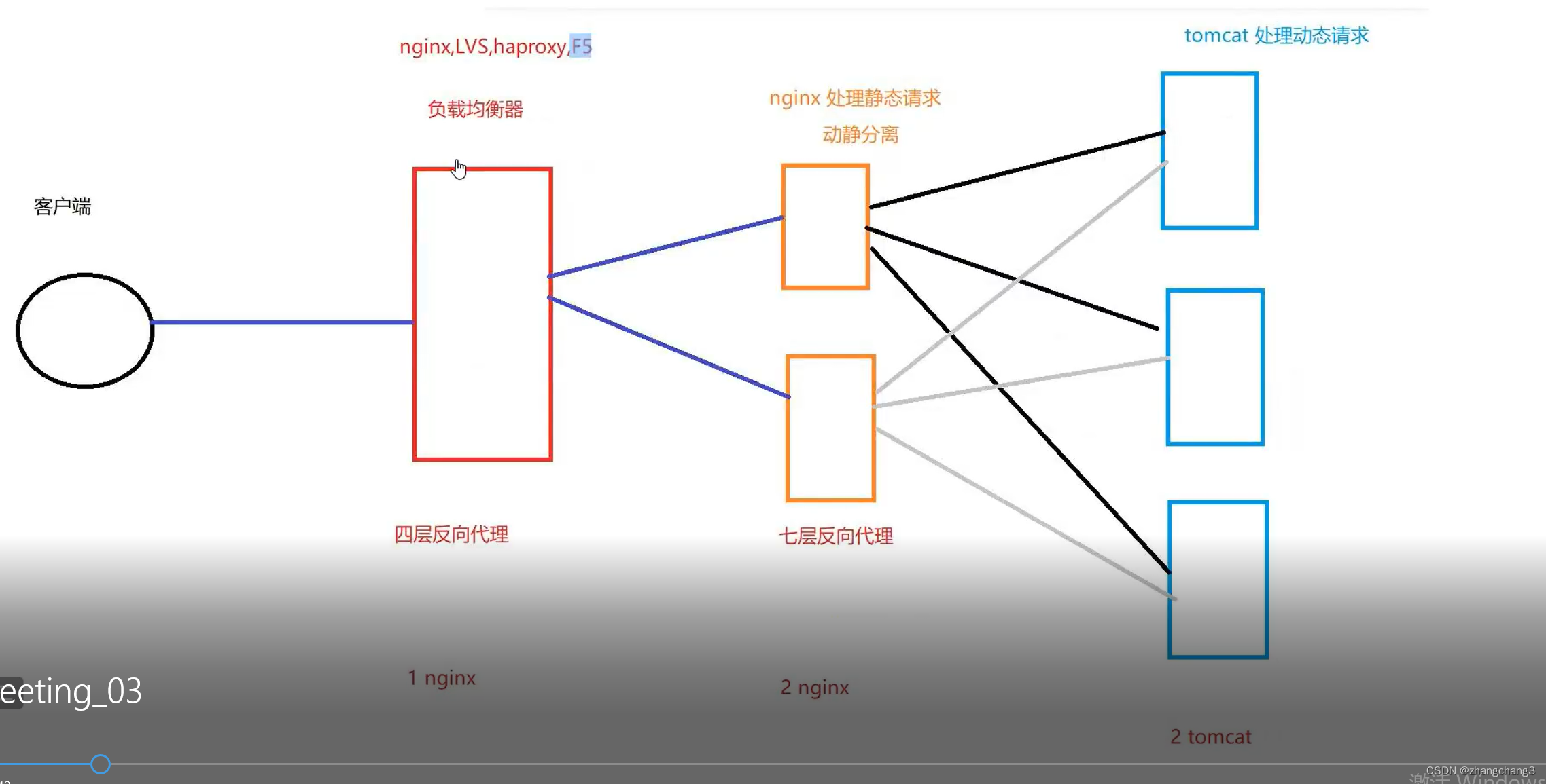 一台机器做nginx四层反向代理,两台服务器做nginx七层反向代理,2台机器做tamcat(其中一台做多实例部署)
