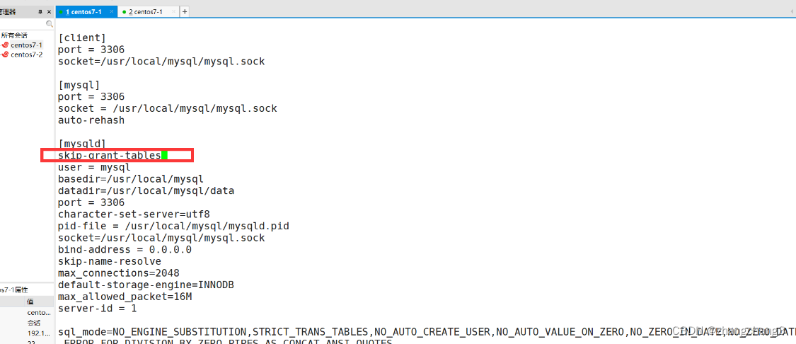 1)修改配置文件,在[mysqld]下添加skip-grant-tables