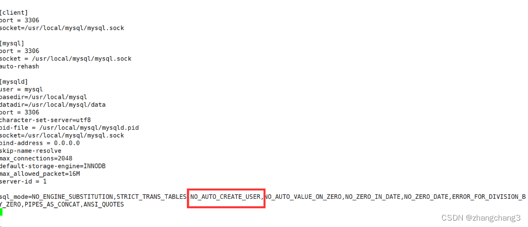 [NO_AUTO_CREATE_USER], 即在grant语句中禁止创建空密码的账户,使用grant语法创建用户必须带上 “identified by”关键字设置账户密码,否则就被认为是非法的创建语句。