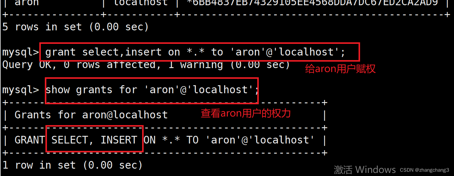 grant 权限列表/ALL ON 库名.表名 to 'username'@'address' identified by '密码'; #授予用户权限