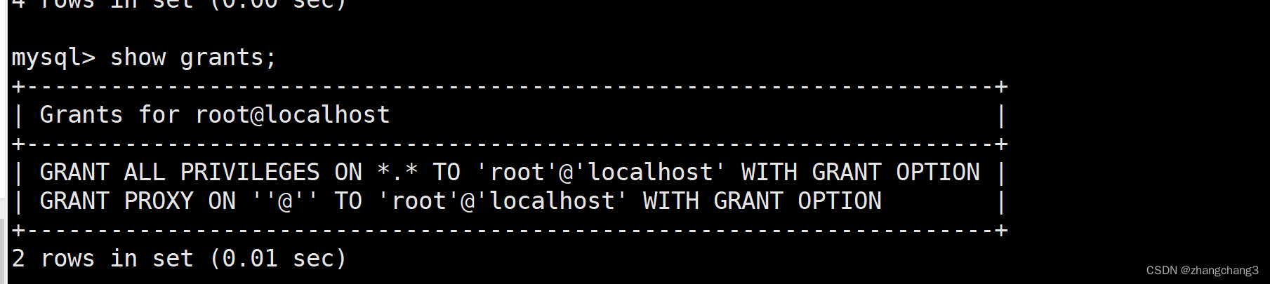 SHOW GRANTS; #查看当前用户(自己)的权限