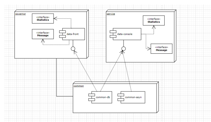 数据统计系统一共分为3个组件,data-front的主要功能是做消息接送和数据统计的可视化操作,需要依赖组件data-console做业务逻辑处理;还要依赖common组件提供最基础的框架功能。