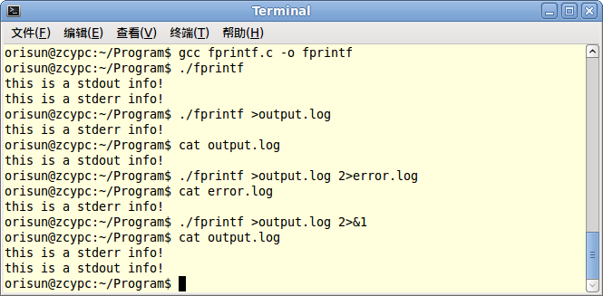 使用fprintf()时,第一参数推荐使用stderr而不要使用stdout,因为stderr的运行级要高一些,程序在异常退出时stderr可以输出,而stdout就不行。