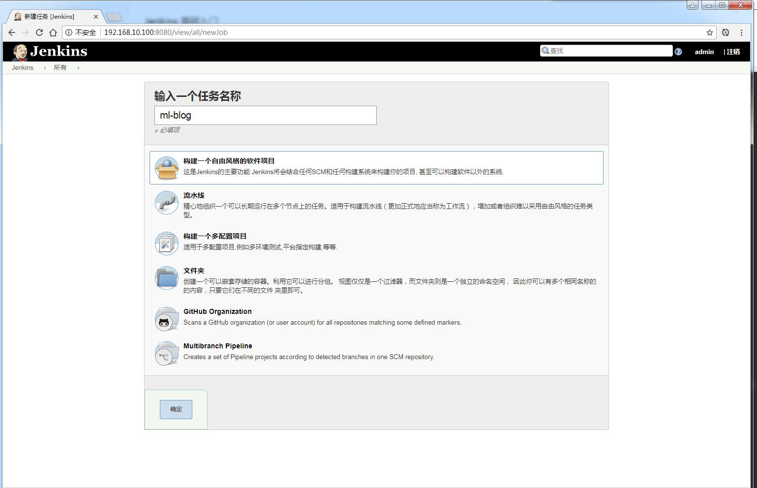 启动成功后,打开浏览器访问:http://192.168.10.100:8080 来到 Jenkins 初始化首页,按照提示设置即可,最终会看到如下界面: