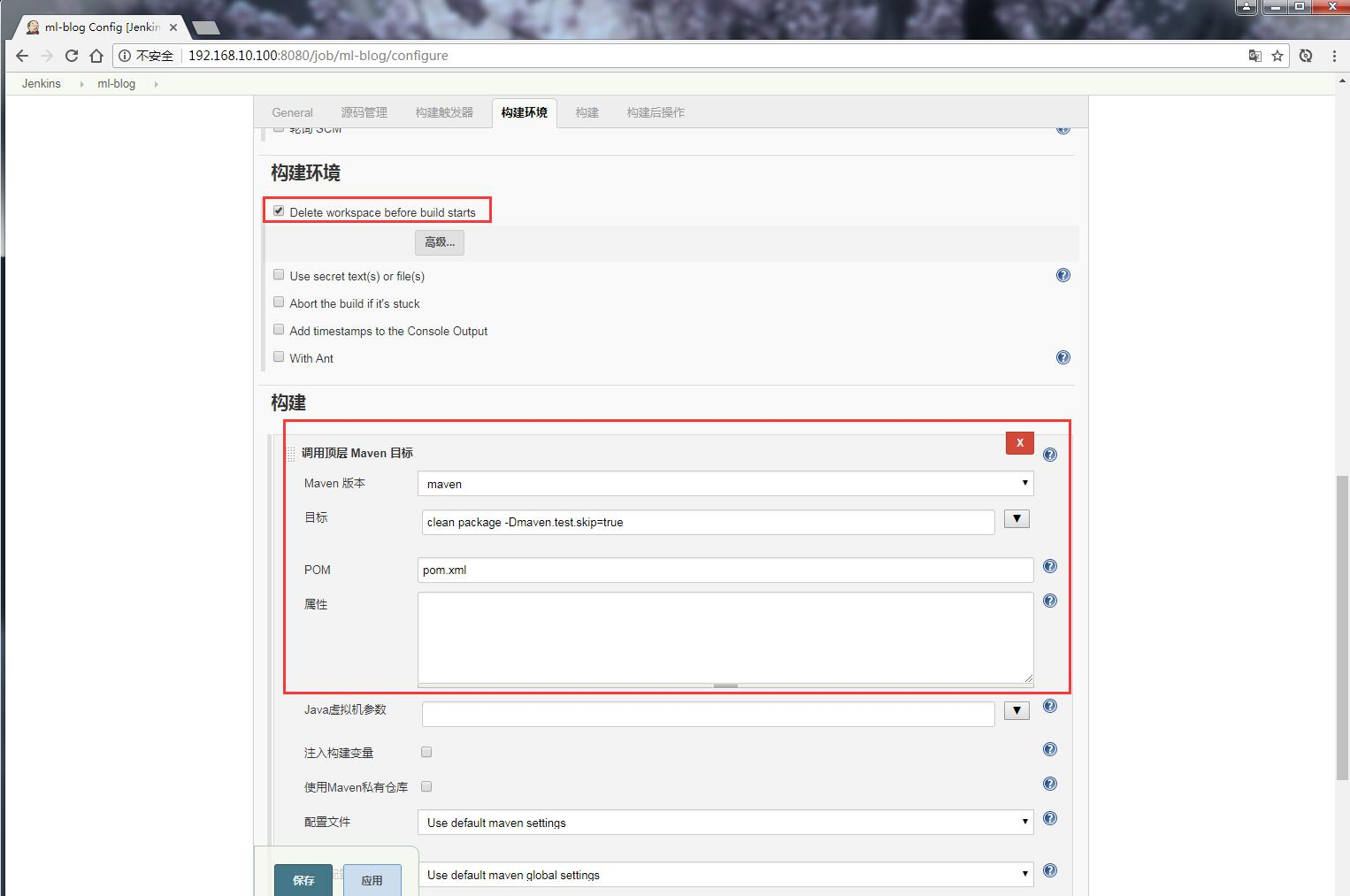 点击 “增加构建步骤”,选中 “调用顶层 Maven 目标”,设置 maven 执行的命令: