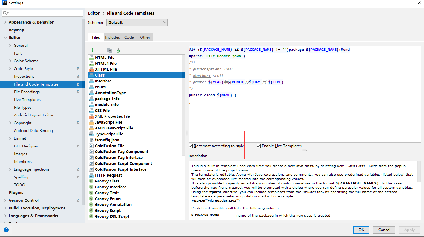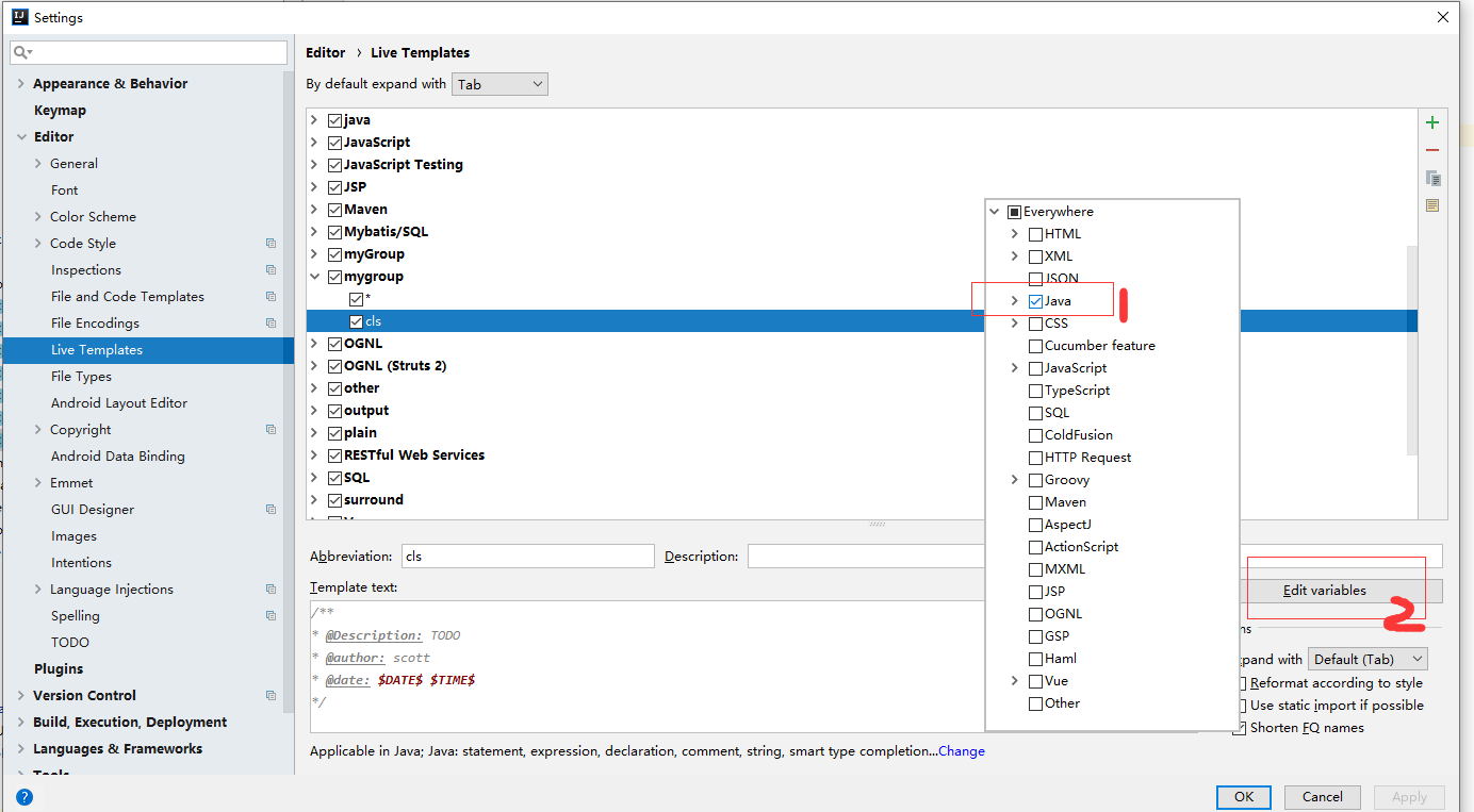 - 通过快捷键,添加类注释和方法注释的模板设置