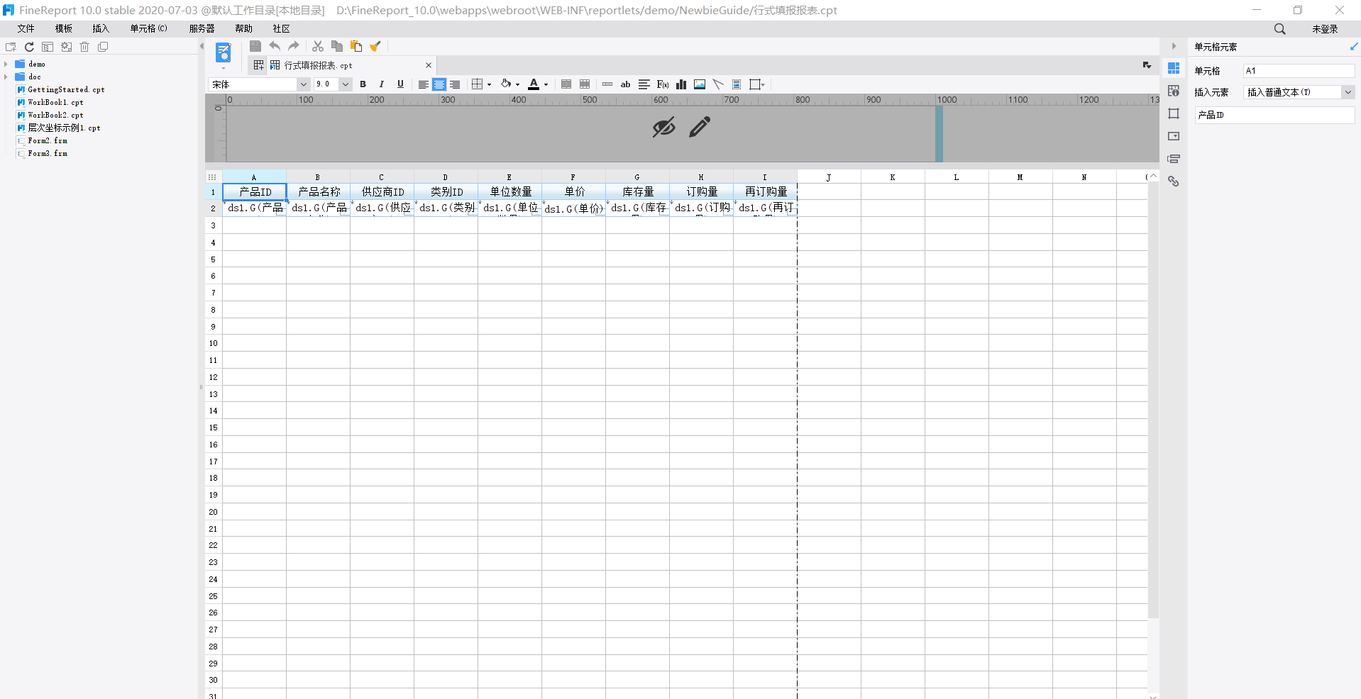 - 帆软只能下载离线版使用。比如帆软V10.0需要下载一个600M的设计器,采用类excel的设计模式,打开时间有20S,反复测试几次,基本都在20多秒。(测试电脑core I5 4核8G)。现在电脑的分辨率都比较高,finereport设计器的分辨率展示不是很理想。