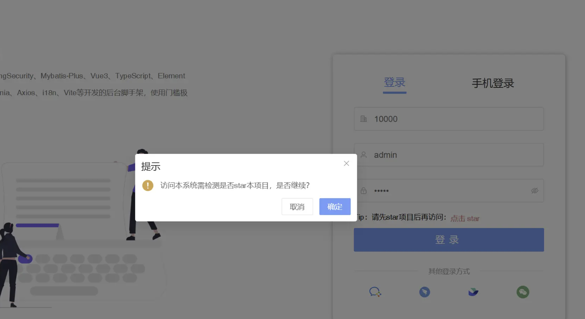 - 在线演示登录功能被锁定,只有Star后才能解锁体验。