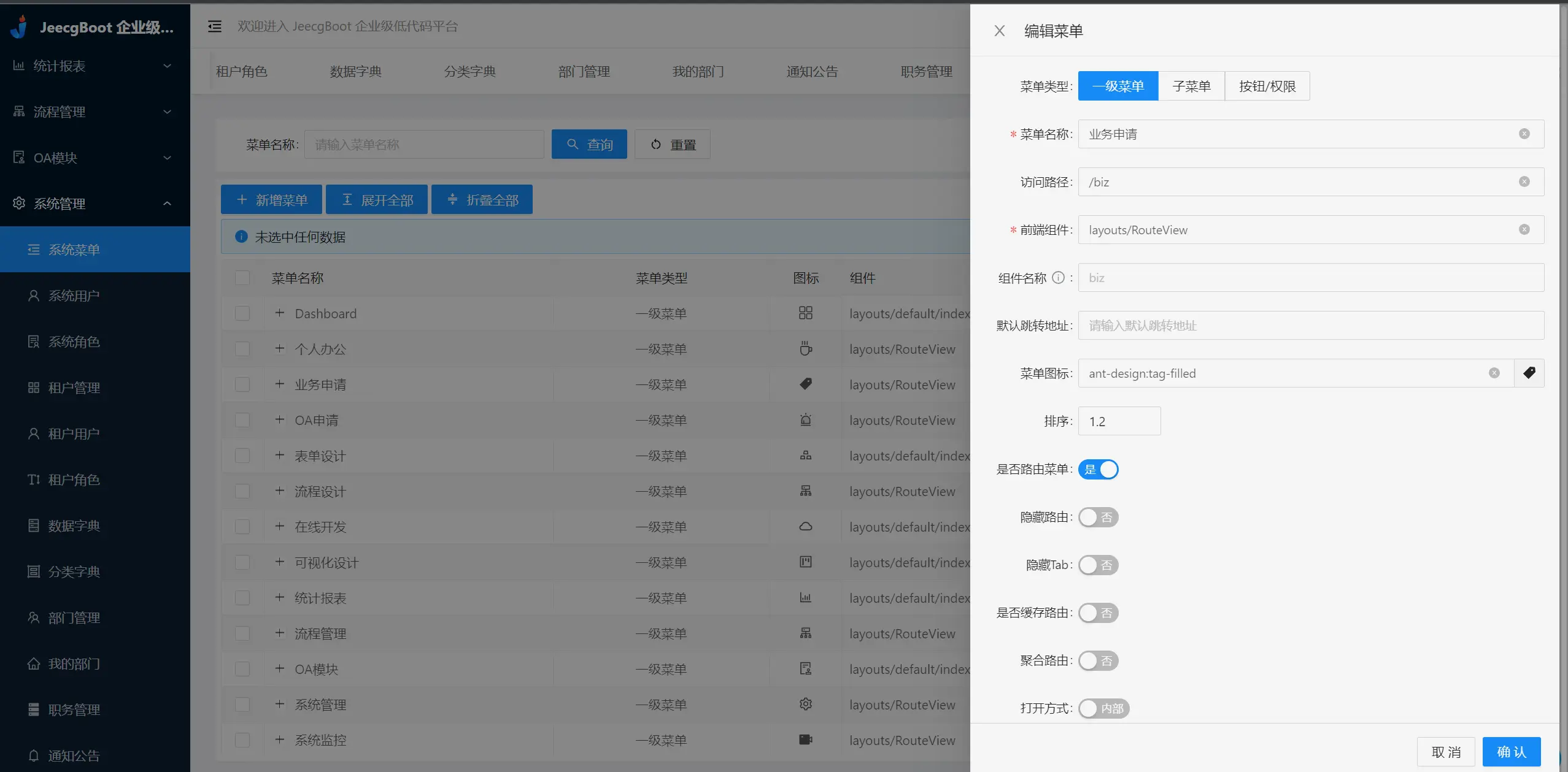 JeecgBoot是一款集成AI应用的,基于BPM流程的低代码平台,旨在帮助开发者快速实现低代码开发和构建、部署个性化的 AI 应用。 前后端分离架构Ant Design&Vue3,SpringBoot,SpringCloud,Mybatis,Shiro,强大的代码生成器让前后端代码一键生成,无需写任何代码! 成套AI大模型功能: AI模型、AI应用、知识库、AI流程编排、AI对话等; 引领AI低代码开发模式, 帮助Java项目解决80%的重复工作,让开发更多关注业务,提高效率,同时又不失灵活性!