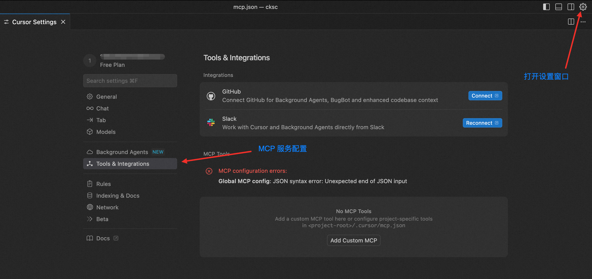 1.1 进入 Cursor 设置界面配置 Streamable HTTP 连接