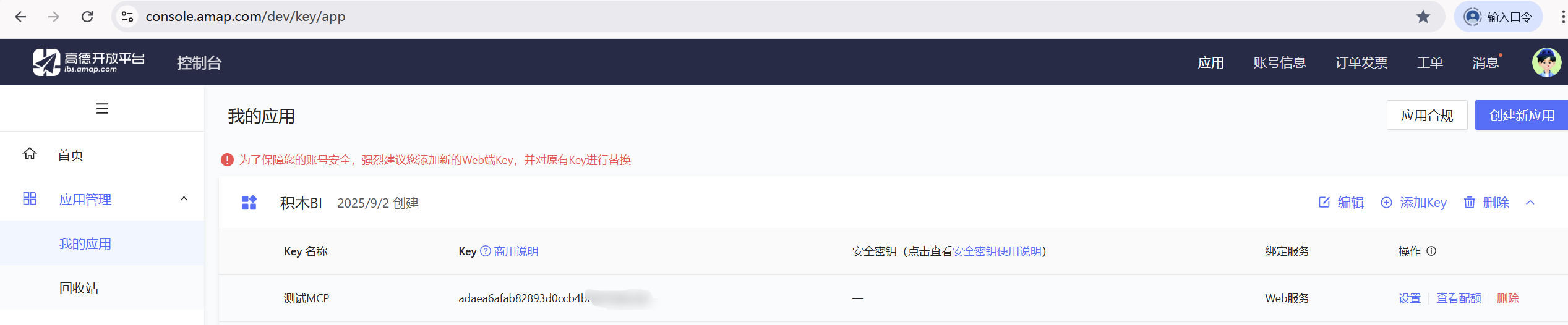 首先,需要在高德开放平台官网申请账号,完成实名认证后进入控制台创建新的应用,并申请相应的API Key。具体步骤参考高德官方文档:高德开放平台 - 创建应用并申请Key