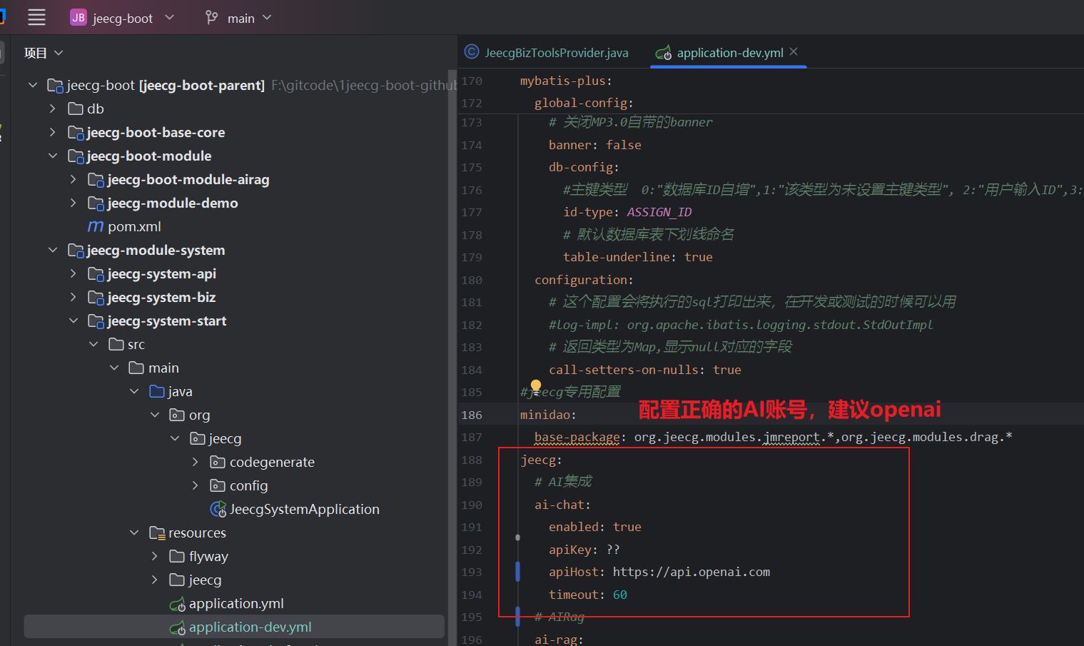 Ai账号申请参考:https://help.jeecg.com/java/deepSeekSupport