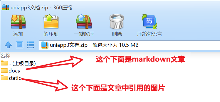 完成目录结构和文档内容后,将docs和static目录打包为zip文件: