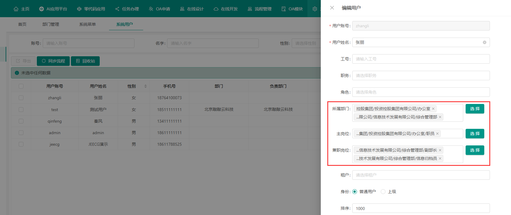 Jeecg 全新组织与岗位体系上线,让集团、多子公司、一人多岗都能轻松落地,组织关系更清晰,管理更高效。