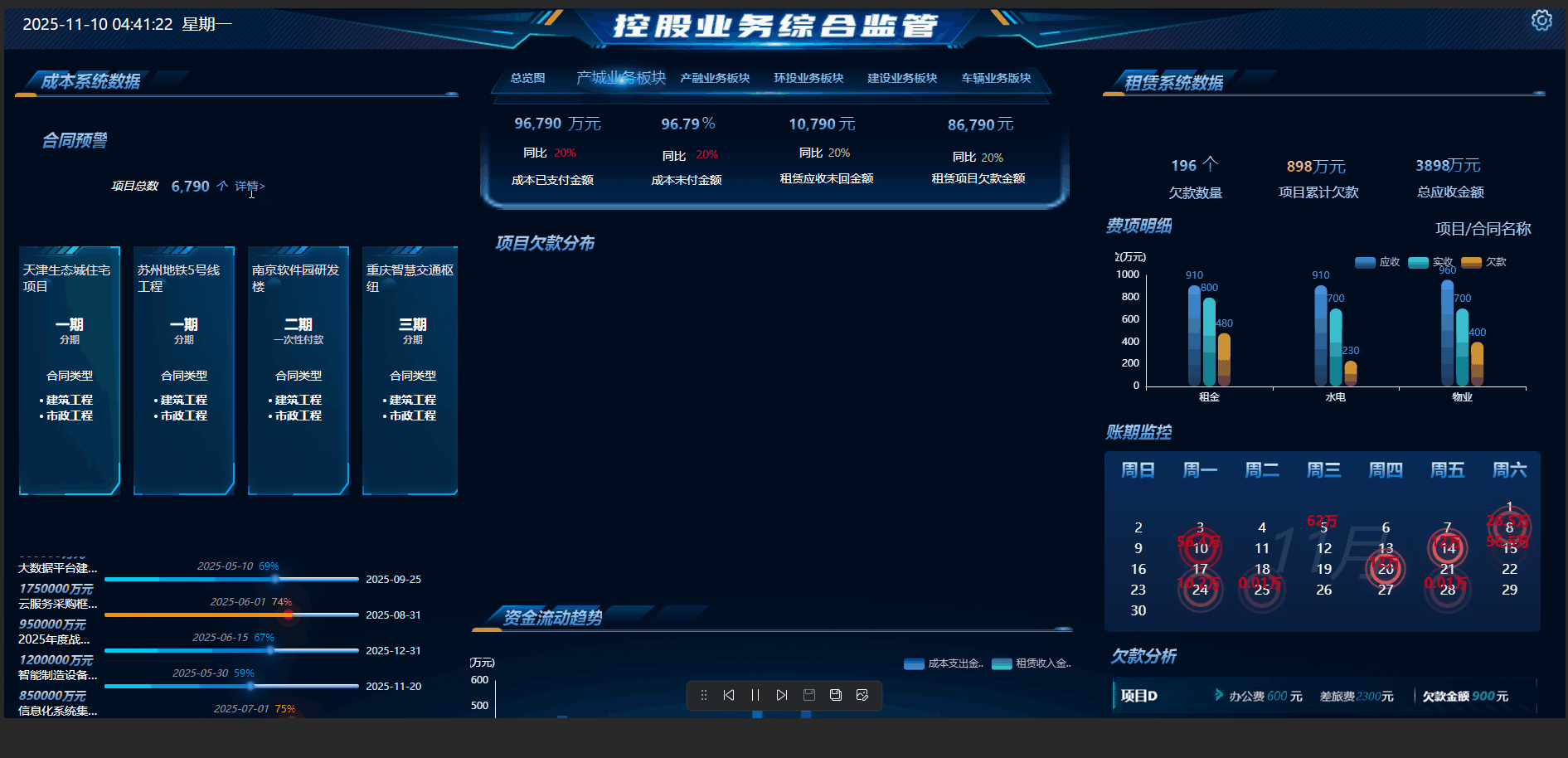 - 大屏设计器支持几十种图表样式,可自由拼接、组合,设计炫酷大屏
