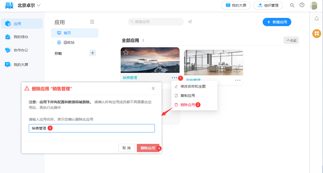 应用下所有配置和数据将被删除。 请确认所有应用成员都不再需要此应用后,再执行此操作