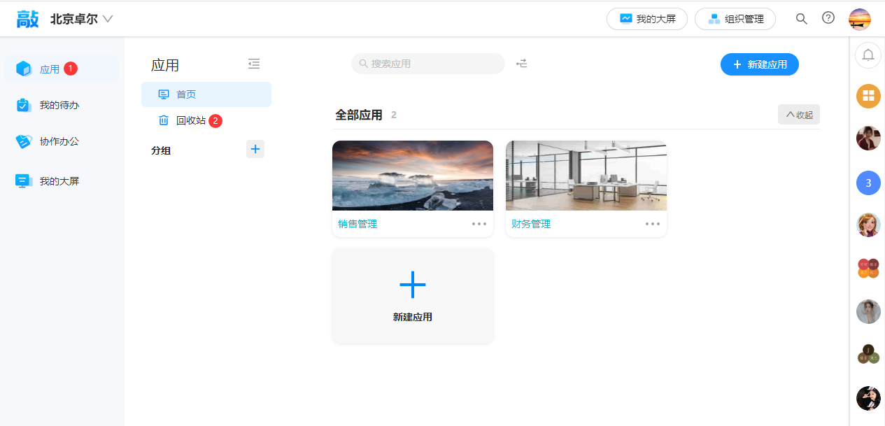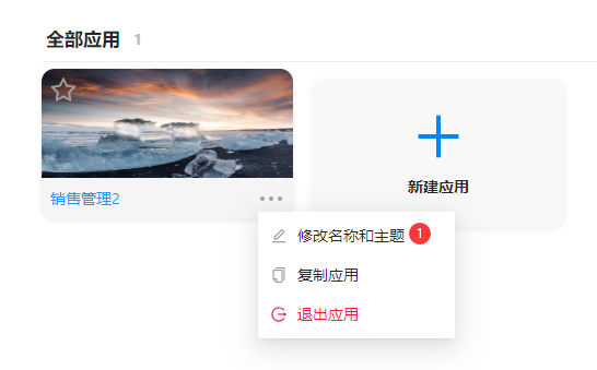 应用的基础操作: 应用的基础操作包含创建应用、修改应用、退出 / 删除应用、排序应用、维护应用、应用回收站