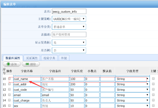 其中***********为在online表单开发里的对应字段的字段名称,而在这里完整代码应该为: value="${data['${tableName}']['cust_name']?if_exists?html}"