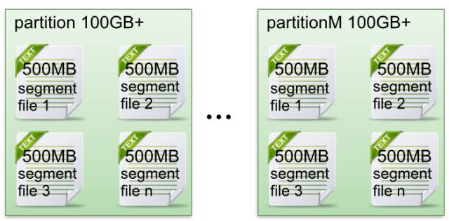 每个Partion(目录)相当于一个巨型文件被平均分配到多个大小相等Segment(段)数据文件中。但每个段Segment file消息数量不一定相等,这种特性方便old segment file快速被删除。