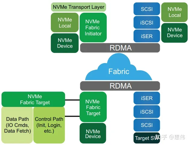 个人理解nvme能提高存储性能,就像4G比3G快一样,电磁波还是光速,但协议变了,所以快了。rdma应用跑在用户态能减小存储时延,spdk在用户态实现nvme驱动,天然能和rdma结合,而且两者的队列能一一映射,能达到锦上添花的效果。坏处就是kernel upstream实现的nvme代码无法复用,网卡硬件得支持rdma,rdma的库很多,出了问题估计会有找不得北的感觉。