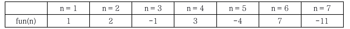 fun为递归函数,直接模拟难度较大。如果把fun视为数列,参数 nn 视为该序列的项数,则容易发现,该序列满足 fun(1) = 1, fun(2) = 2, n \ge 3fun(1)=1,fun(2)=2,n≥3时,fun(n) = fun(n - 2) - fun(n - 1)fun(n)=fun(n−2)−fun(n−1)。而本题的目标转化为求数列的第 77 项,因此可以使用递推依次计算数列各项: