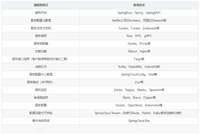 微服务中,首先肯定离不开服务开发、服务配置与管理、服务注册与发现、服务的调用、熔断器以及负载均衡等等,除此之外,还有服务的路由、监控、部署,还有可能涉及到一些中间件等等。
