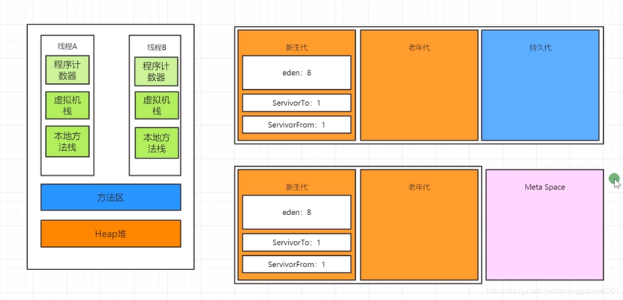 内存模型主要是方法区和Heap