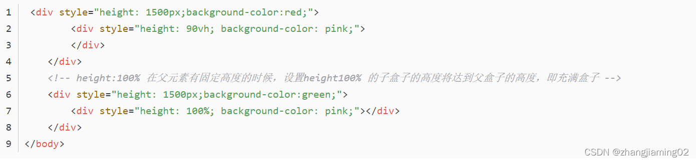 <!-- vh的高度只能是屏幕可视的高度,父元素的高度大于屏幕可视范围的高度,设置100vh的子元素不能达到 -->