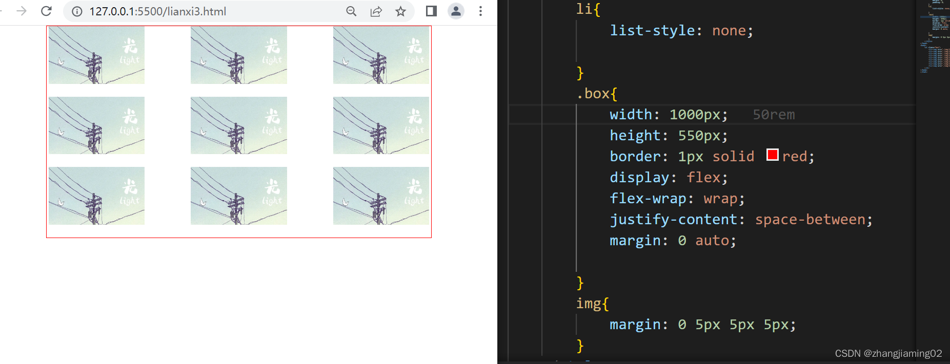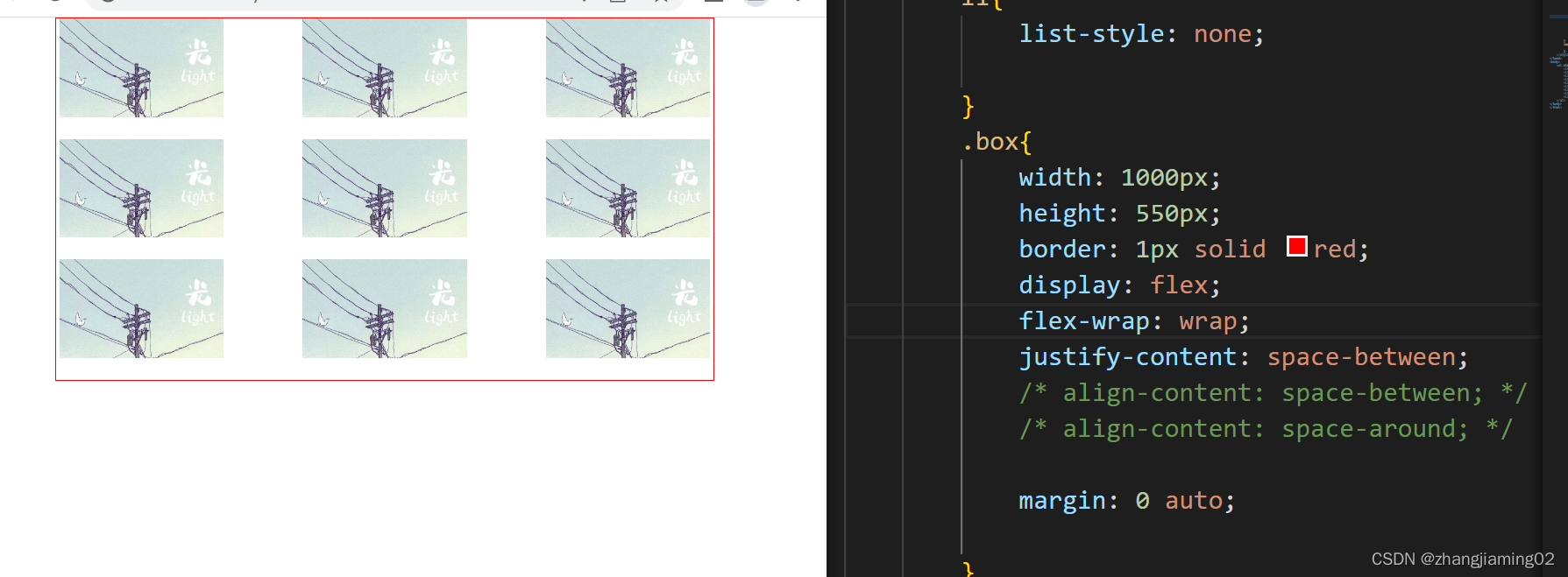 justify-content : space-around 每个项目的两侧间距相等,所以在一排的项目的项目之间的间隔比边框的间隔大一倍。