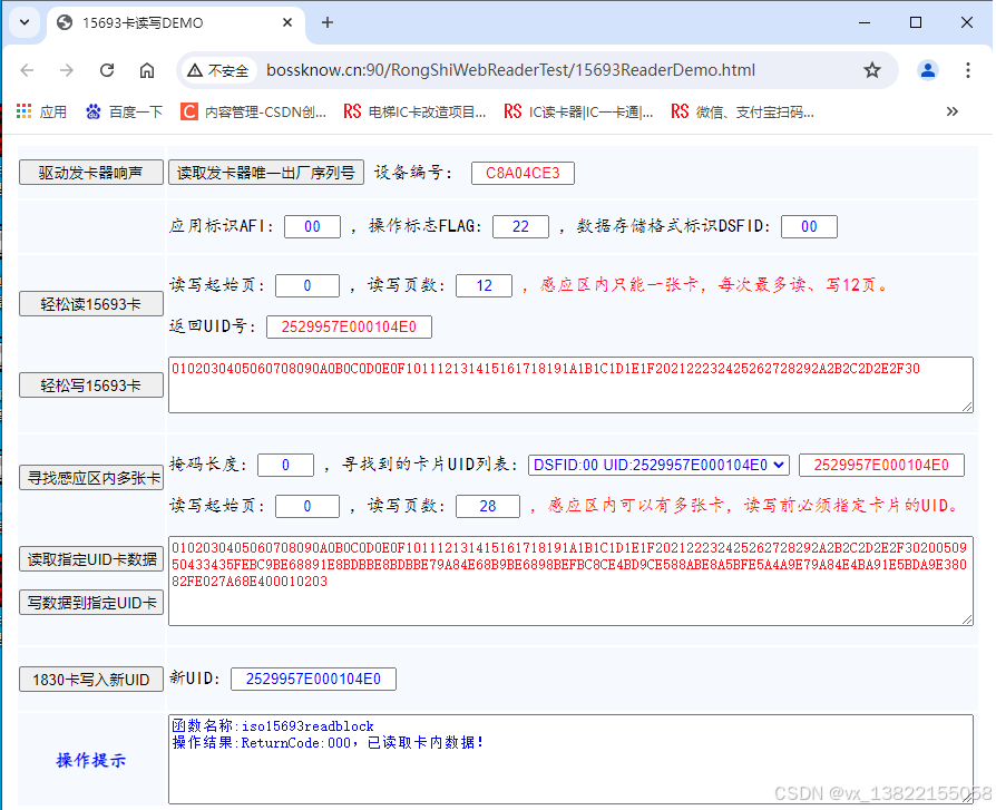 mypiccserial = "0000000000000000"; //指定序列号,未知卡序列号时可指定为16个0,因为15693卡是8个字节的卡序列号