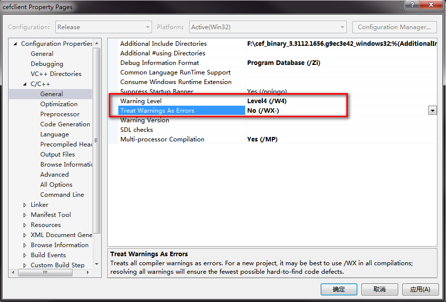 如果在编译中遇到Error2220,只需要将Treat Warnings As Errors设置为No即可