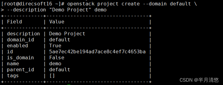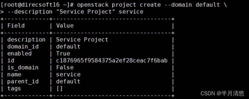 5、创建service项目,用于openstack内部用户使用: