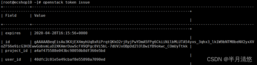 # openstack token issue
