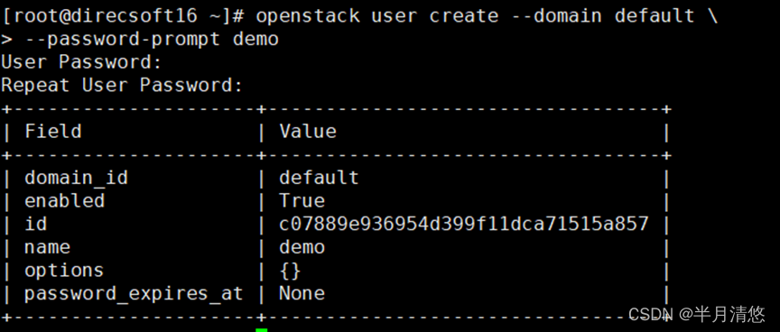 # openstack user create --domain default --password-prompt nova
