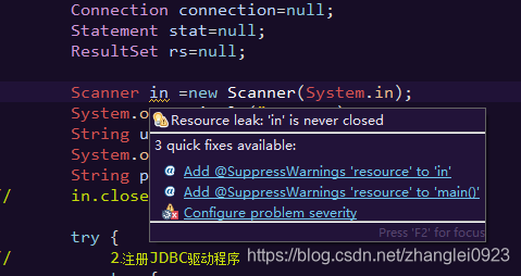 1.@add @SuppressWarnings ‘resource’ to ‘in’ Suppress抑制、镇压、封锁