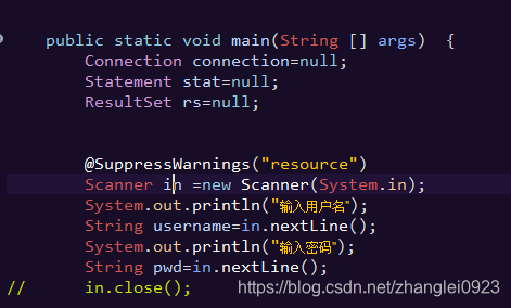 原因:在使用in后没有关闭,申请了一个输入流system.in在你用完这个后没有将其关闭,所以会警告,