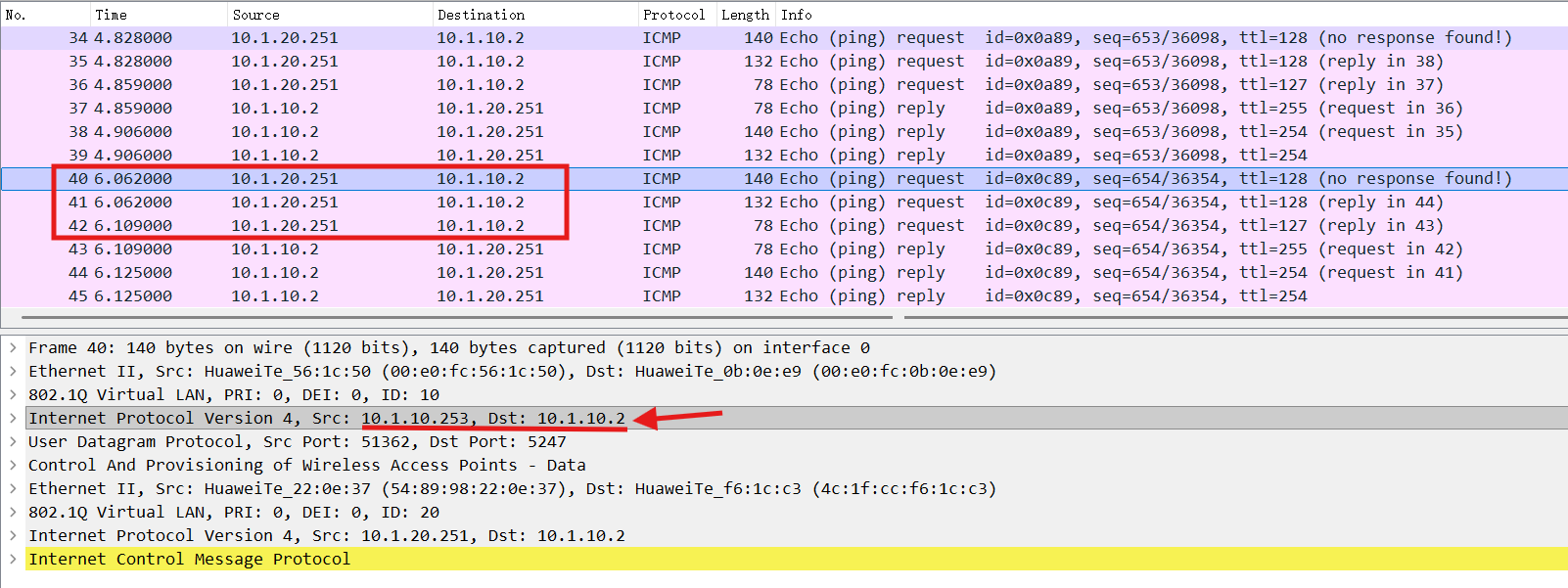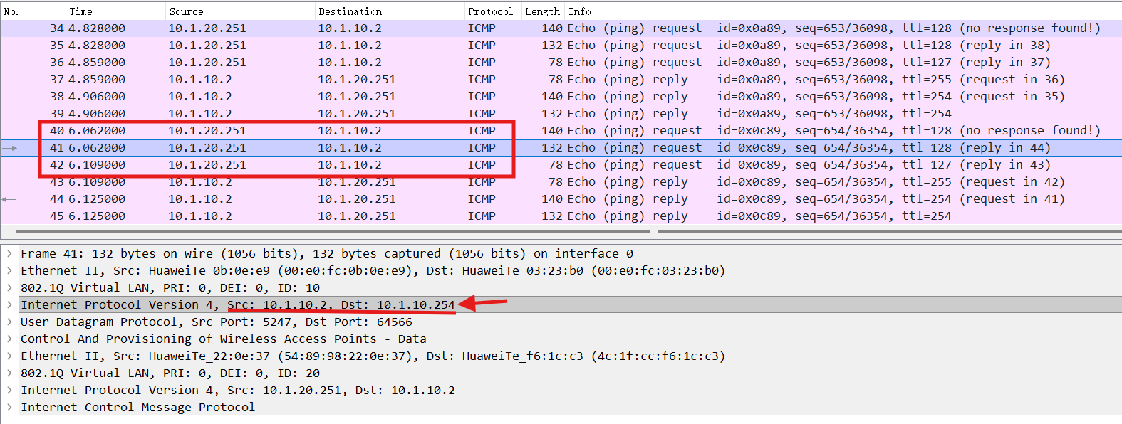 第1次:ICMP报文封装到capwap隧道中,由AP2转发给AC