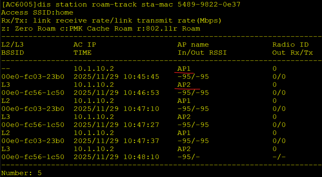 效果:终端从AP1漫游到AP2,IP地址不变,业务不中断。