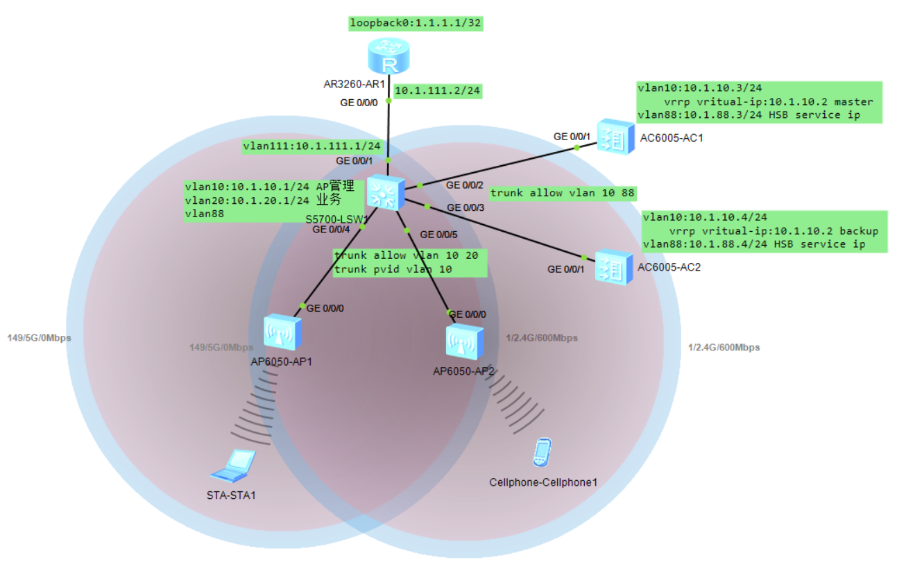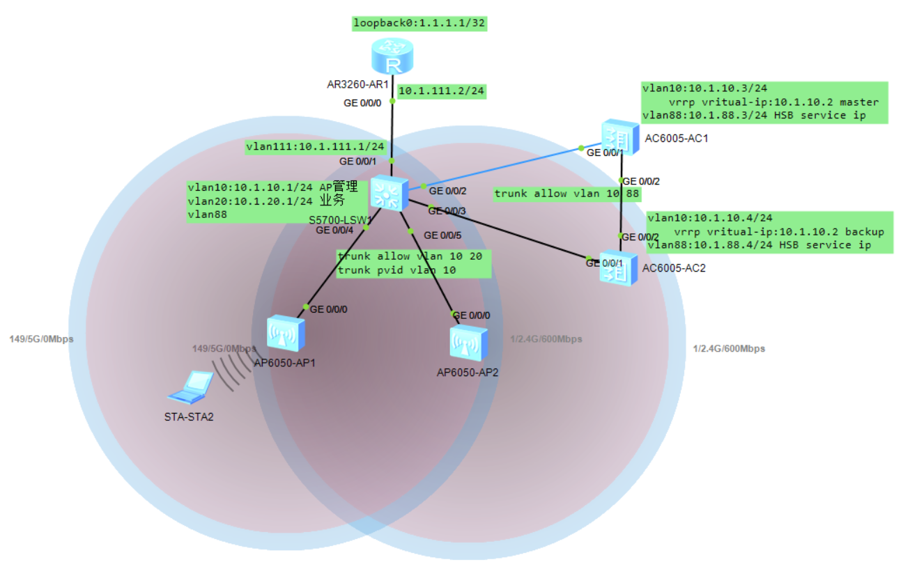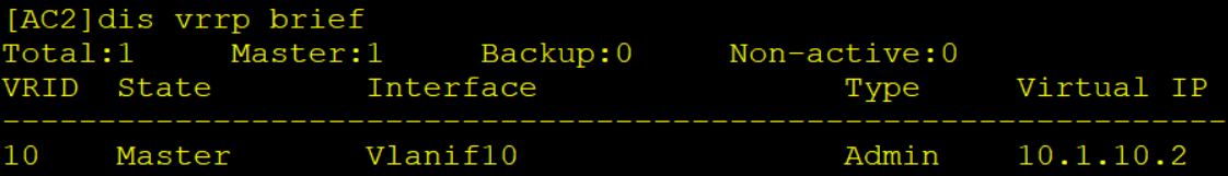 AC1和AC2之间vlan10组成VRRP备份组,使用虚拟IP作为capwap隧道源IP