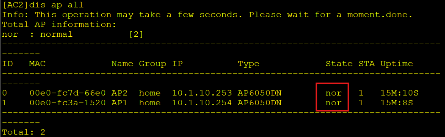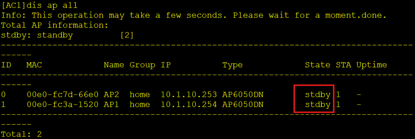 AC2为nor状态,AC1为standby状态