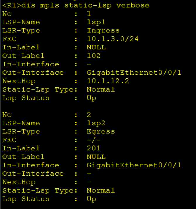 2.配置LSP时如果只配置出接口,而不配置下一跳,导致LSP是down状态;可以只配下一跳而不配出接口