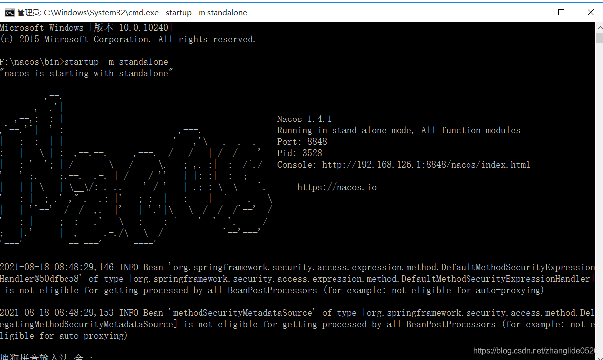 说明:出现如下图则证明服务已经成功注册到nacos中.