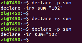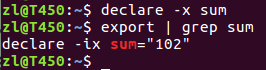 b. declare命令的-x选项指定变量为环境变量(作用与export相同)