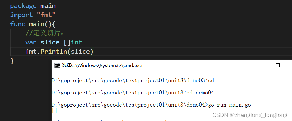 【1】方式1:定义一个切片,然后让切片去引用一个已经创建好的数组。