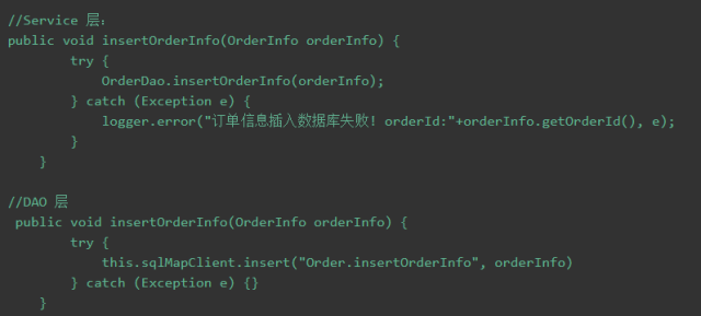 把异常给吃掉了,在 service 层调用的时候,虽然没有打印报错信息,但是这能是容错吗?